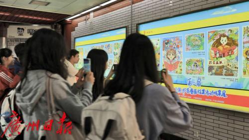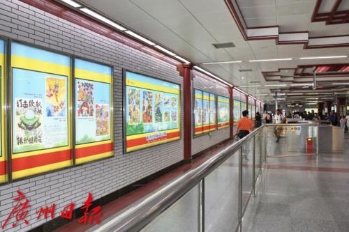 近日,一系列“扫黄打非”漫画作品登陆广州地铁一号线农讲所站。