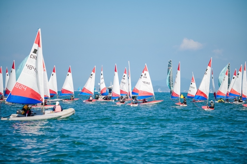 秋日风正好,扬帆正当时!11月4日,第十五届中国杯帆船赛继续迎来好天气。这天上午阳光灿烂,中国杯赛场充满了活泼生机——青少年组别开赛仪式在此举行,来自13个省份20个城市选手开启新征程,为赛事增添了更多青春气息。本届“中国杯”青少年组别共设置男女Topper5.3、Topper4.2以及FAREAST23R共5个组别,小水手们将在周末两个比赛日全力比拼,在中国杯大舞台上增进帆船技术。