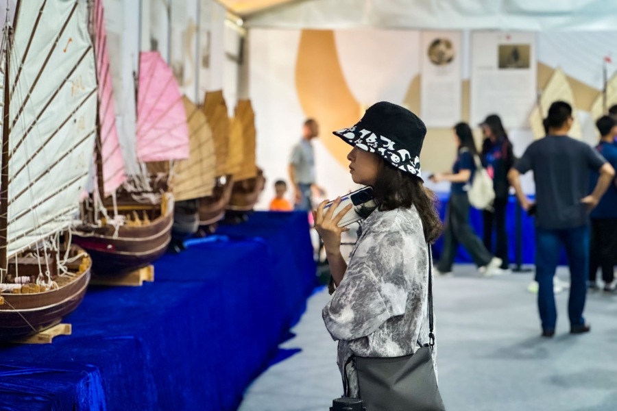 中国传统帆船模型展位于赛事村内,展出了多个沿海省份(广东、福建、浙江、江苏、辽宁等)舟船类非遗传承人建造的中国传统帆船船模近40艘,同时以图片展示、船型介绍、背景故事等形式,让更多人了解中国传统帆船。本次展览的船模将在全网公益销售,以此启动国内首个传统帆船竞赛项目的筹备工作。“中国杯”组委会还在现场设置了中国传统航海模型制作体验活动、中国传统帆船操纵驾驶技艺传承体验活动,吸引更多人了解中国传统帆船的结构与制作工艺,与这个古老的灵魂直接对话,感受它的厚重历史与魅力。