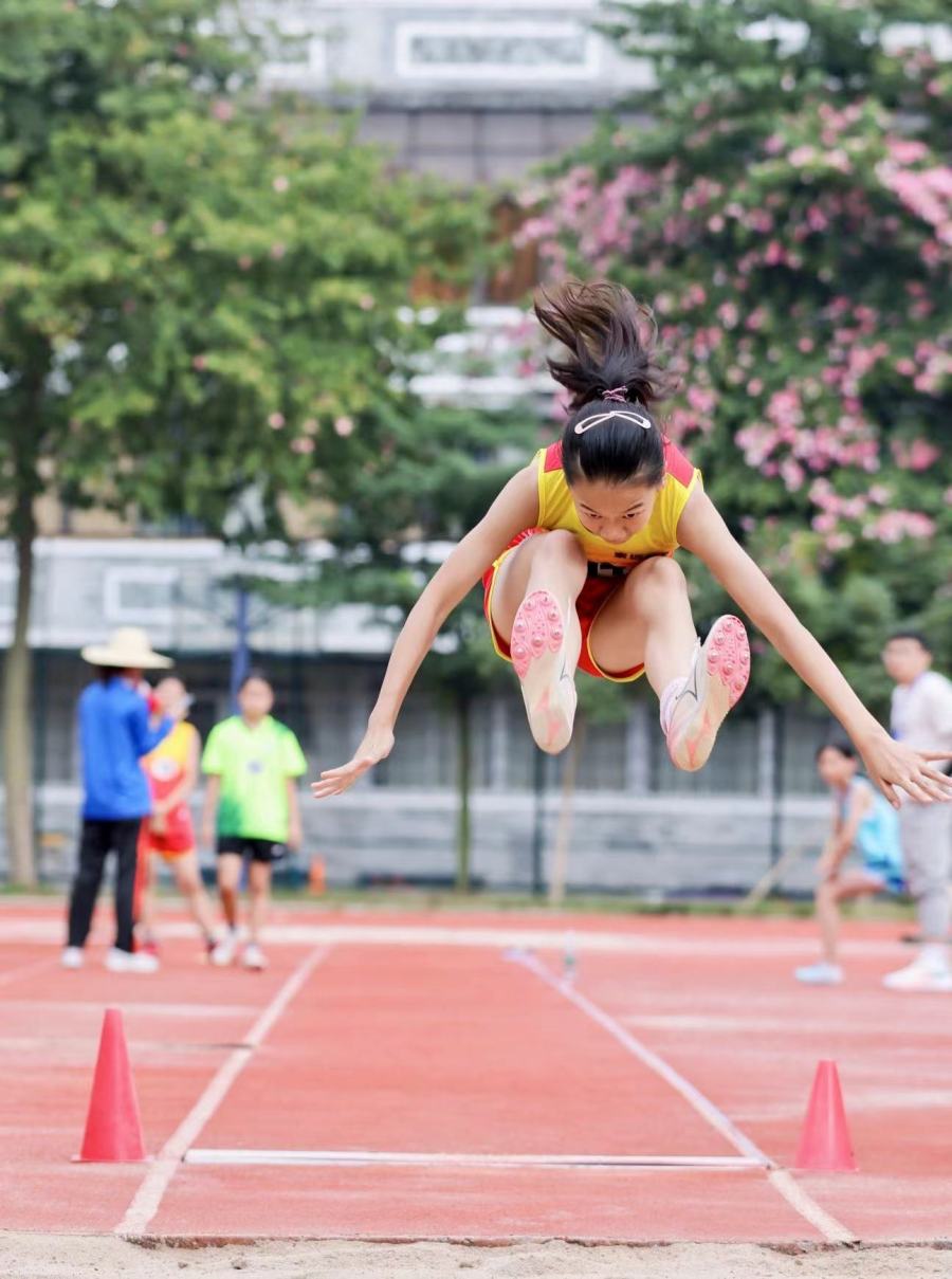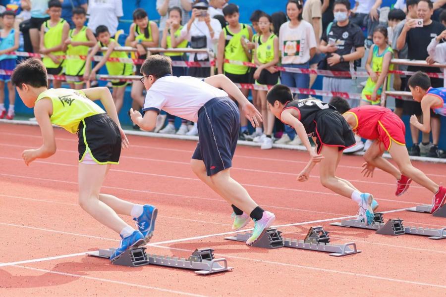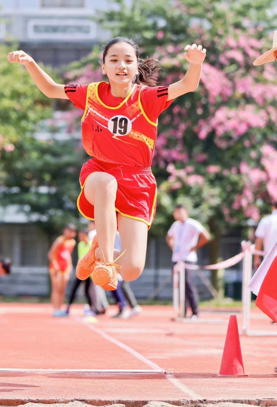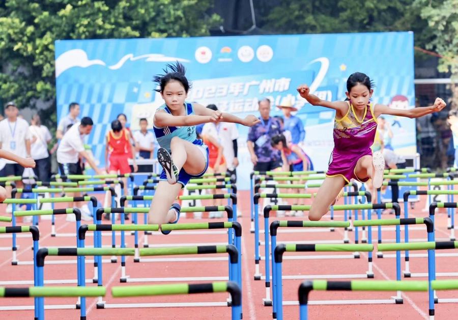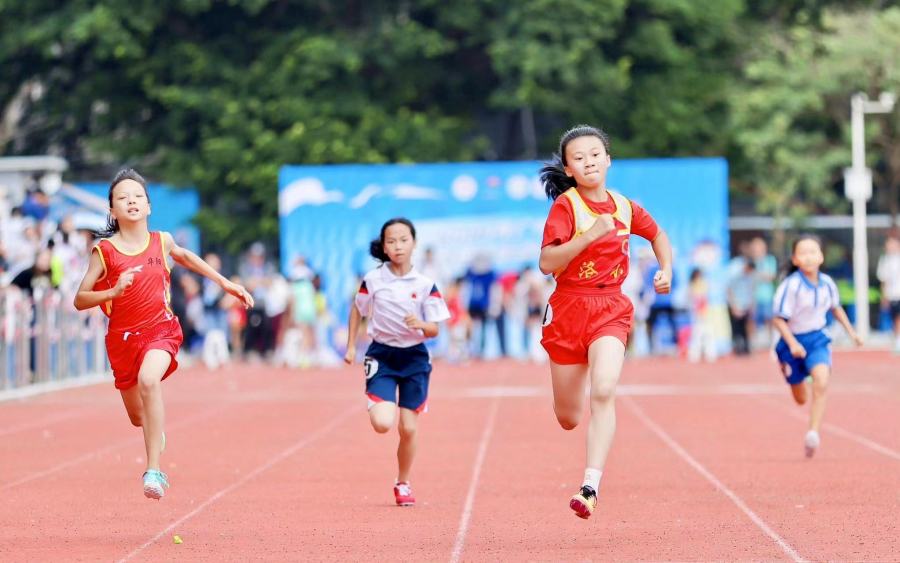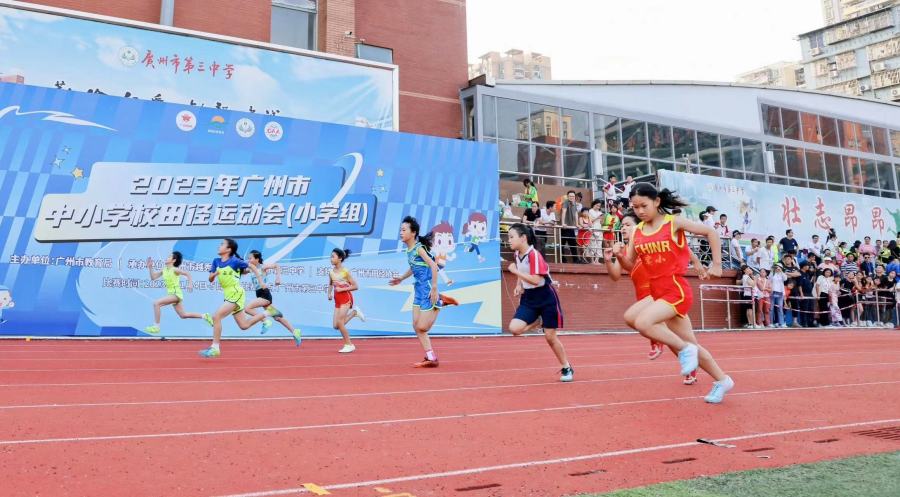 “继往开来承奥运精神 勇往直前当阳光少年”的大红幅高挂在赛场,为深化体教融合,进一步提升学生身体以及综合素质,广州再推出全新的校园赛事——中小学校田径运动会。