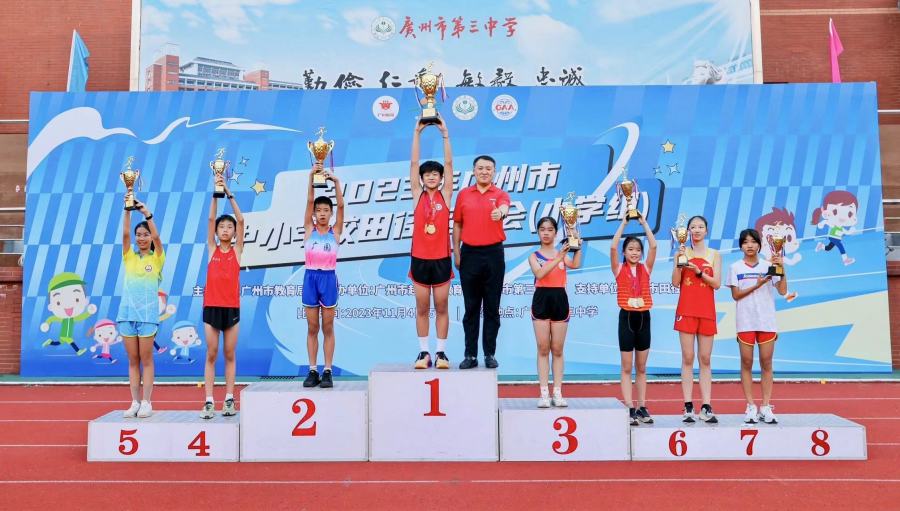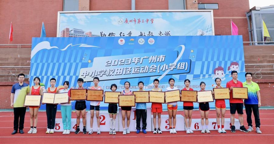 11月4日-5日,2023年广州市中小学校田径运动会(小学组)比赛在广州市第三中学举行,赛事由广州市教育局主办,越秀区教育局承办,共有63所学校的947名运动员参赛。最终,广州市东山培正小学、广州市白云区广园小学、广州市黄埔区东荟花园小学分列团体总分前三名,共有14所学校获得体育道德风尚奖。