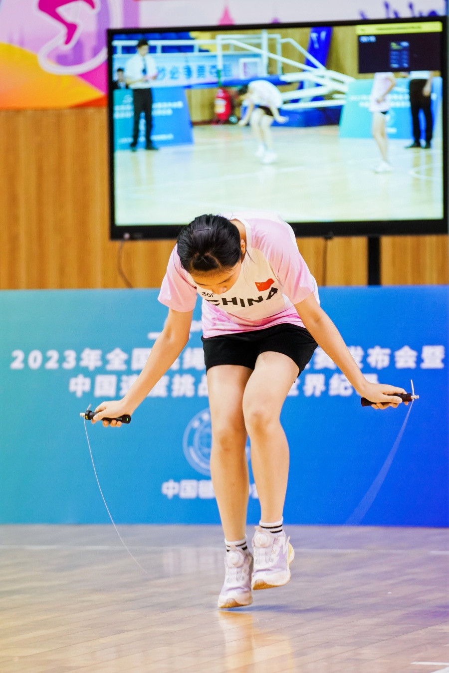 11月5日,由中国毽球协会、广州市花都区人民政府主办,全国跳绳推广委员会、广州市花都区文化广电旅游体育局、广州市花都区教育局承办的2023年全国跳绳联赛总决赛发布会暨中国速度挑战跳绳世界纪录在花都区跳绳基地——花都体育馆举行。