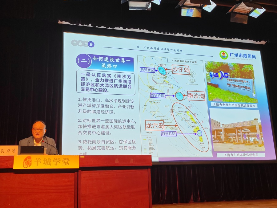 11月4日,“新时代 新作为”羊城学堂系列讲座如约而至。本次讲座特邀广州市港务局党组书记、局长、一级巡视员孙秀清担任主讲嘉宾,以《建设世界一流港口,助力广州走前列开新局》为题,追溯广州港的过去、分享现在、畅谈未来,向广大市民朋友揭秘千年古港的深厚底蕴,展示广州港的发展成就,描绘广州致力打造世界一流港口的高质量发展蓝图。