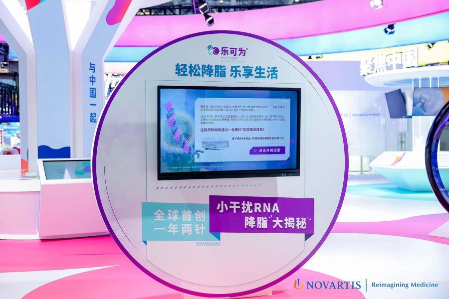 11月6日,记者在第六届中国国际进口博览会(以下简称“进博会”)上看到,诺华再次展出了其全球首创的小干扰RNA降胆固醇药物乐可为®(英克司兰钠注射液)。据悉,这款连续3年参展的“进博宝宝”在今年8月提前获得中国国家药品监督管理局批准,成功实现“展品变商品”的转化。就在进博前夕,英克司兰钠注射液正式进入全国多地医院,惠及首批患者。