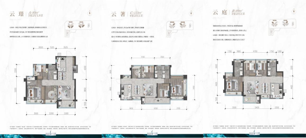 该项目主力产品为建面约80-113平方米的精装三至四房,采用LDKB一体化和联动式中西厨设计,强调高拓实用性。同时,该项目还有全系270度奢景视野,113平方米户型更是做到了环绕式三面飘窗设计,可以享受360度环幕视野,并且拥有超14米舒阔南向五开间,收纳空间约为27.55立方米,相当于765个20寸的登机箱容积,而且还首创板块内窄边吊顶,实用性拉满。