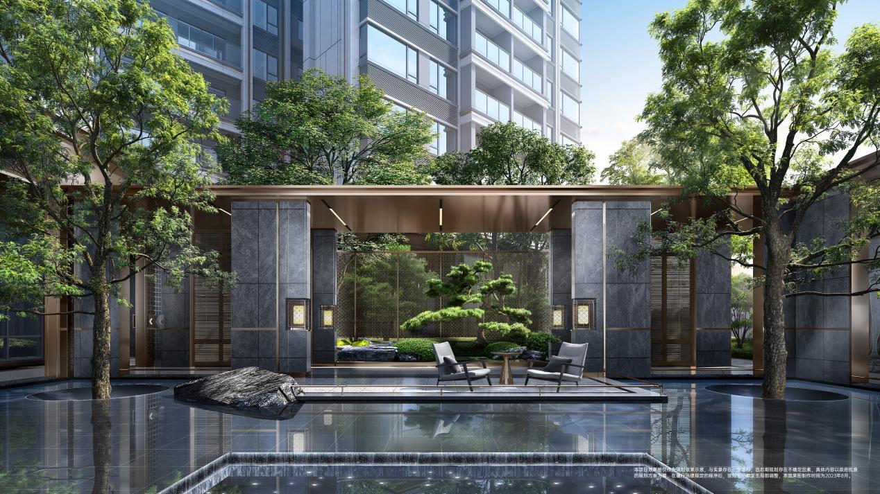 全冠移植泰山松、京都岚山红枫等臻贵名木/龙湖星玺·青云阙项目意境图。