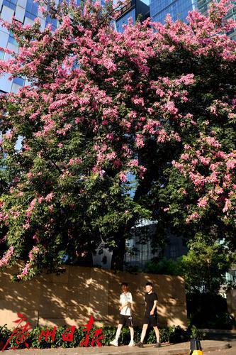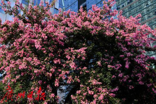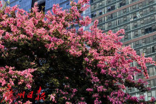 珠江西五街的美丽异木棉惊艳绽放。