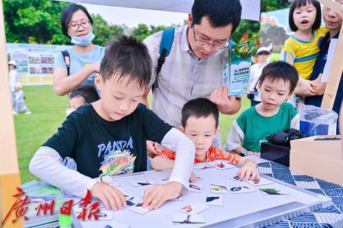 家长带着孩子在现场玩小游戏。