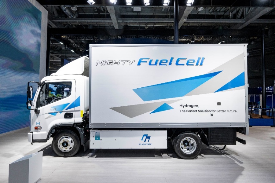 在商业化落地领域,现代汽车集团则展示了氢燃料电池卡车盛图,这是该车首次在进博会亮相。由现代商用汽车与现代汽车集团首个海外氢能电池系统研发、生产、销售基地——HTWO广州共同研发。采用了国内领先的动力配置,电机峰值功率140kW,峰值扭矩达到了360N·m,加速快,爬坡能力强。与此同时,采用HTWO广州燃料电池,氢电转换效率国际一流水平,节能效率还可让车辆跑得更远。