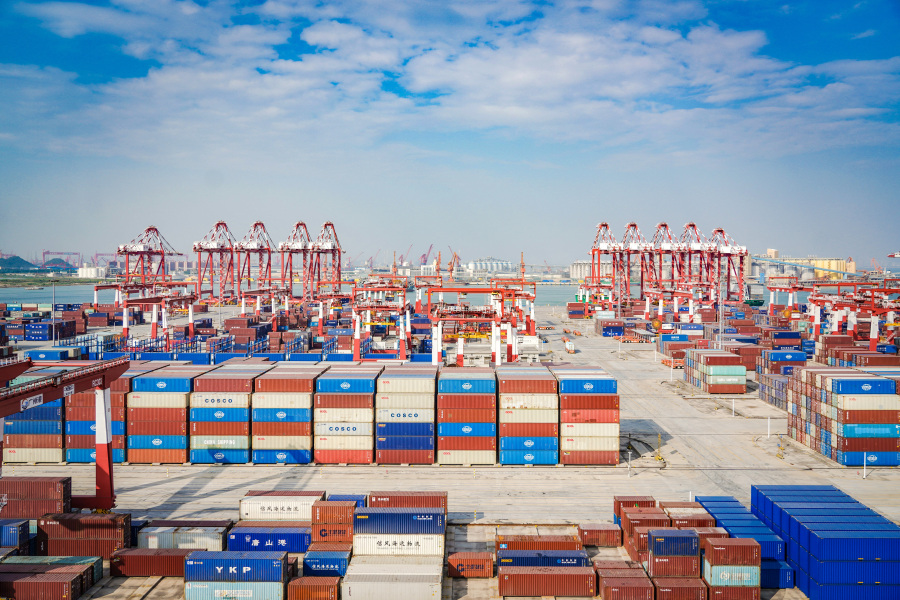 2022年7月28日,正式投入运行的南沙四期码头,港区面积约120万平方米,建有4个10万吨级海轮泊位及配套集装箱驳船泊位,年设计通过能力为490万标箱。运行一年来,集装箱测试吞吐量达92万标箱,南沙港区集装箱年通过能力稳步提升至2400万标箱,位居全球单一港区前列。