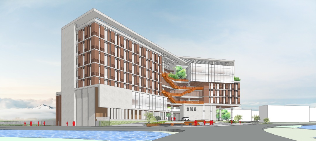 金域楼将结合周边地形、地貌、植被情况打造前广场、后花园,塑造园林式建筑,建设成为广州医科大学新一代标志性建筑。金域楼主要用于金域检验学院的教学、科研、技术转化用房和校史展览馆,为建设国内一流、行业领先、领域标杆的国家现代产业学院提供重要支撑平台。