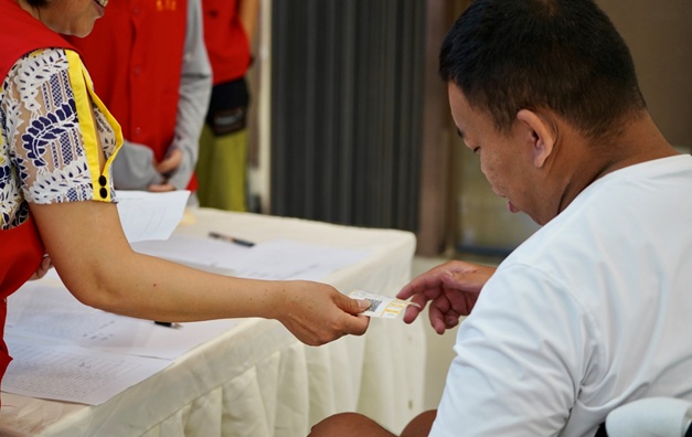 天气晴朗的下午,观看电影的读者三三两两组着队来到电影院签到领票,他们有的坐着轮椅,有的飞快地打着手语进行交流,脸上洋溢着期待的笑容。广青启智服务总队副队长茉漓先是安排好志愿者的工作,然后微笑着迎接每一位观影的读者,指引他们进入影院。随着观众席逐渐坐满,观影环节正式开始。