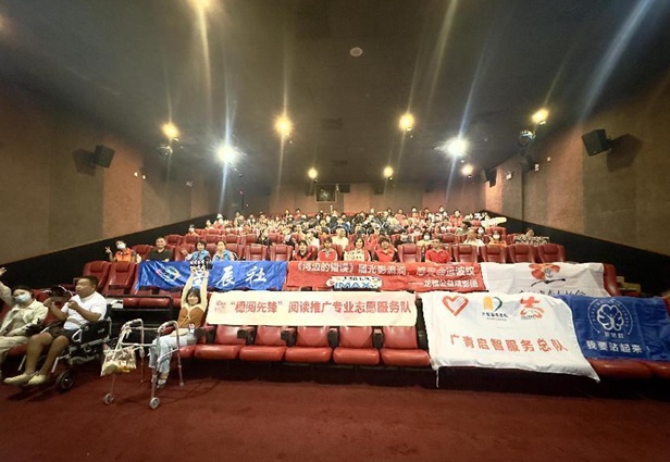 2023年11月5日,广州图书馆携手星辰社、卢米埃Imax影城合生广场店、广州市聋人协会、广青启智服务总队和复健社联合举办融合观影活动,邀请包含听障人士、视障人士、脑卒中康复者和助残志愿者在内的130名读者观看院线电影《河边的错误》。