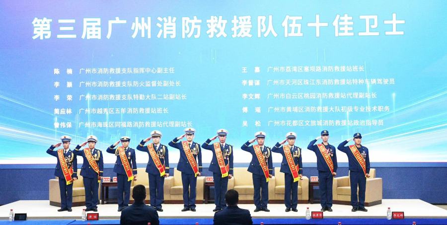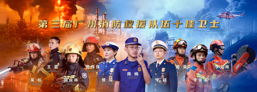 11月8日,在广州消防救援工作发布暨消防救援队伍十佳卫士代表访谈会上,第三届广州消防救援队伍十佳卫士陈楠、李颖、李荣、简应林、曾伟保、王嘉、李普谋、李文辉、傅瑶和吴松正式亮相。
