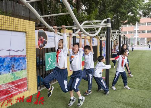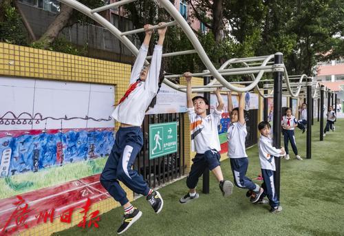 有学校可能会为了杜绝学生受伤和发生危险的可能性,课间10分钟让学生们待在课室。天府路小学校长欧阳琪说,“这样看起来对孩子的安全更有保障。但我认为学校应该在担当适量风险的同时,让孩子们在课间能走出课室活动,让他们充满活力、积极地成长。这其实是学校有担当的一种选择。” 在天府路小学,记者看到学生在课间10分钟里,有的在攀爬墙上攀岩,有的双手吊在云梯上,有的在一楼架空层打篮球。