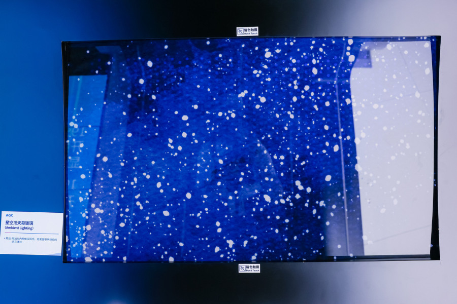 在AGC展台左侧,一辆造型简约新颖的“汽车”吸引众多观众围观。据悉,这是一辆可通过AR技术沉浸式体验AGC移动方案的装置,透过工作人员的平板,该车的“结构”一一呈现在观众面前。如可以直观体验AGC首次正式公开展示的“星空顶天幕”的效果。据介绍,“星空顶天幕”利用AGC积累多年的丰富的高附加值玻璃技术,融入光控制、隔热、防紫外线等功能,可增添车内空间的智能性与奢华感。同时该技术将为汽车的大型全景天窗赋予全新的光线与功能,升级娱乐空间。