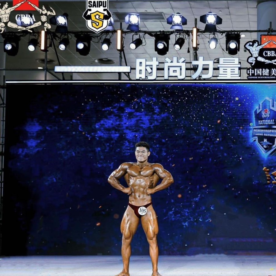 王晓昊在2023中国大学生健美健身锦标赛决赛现场