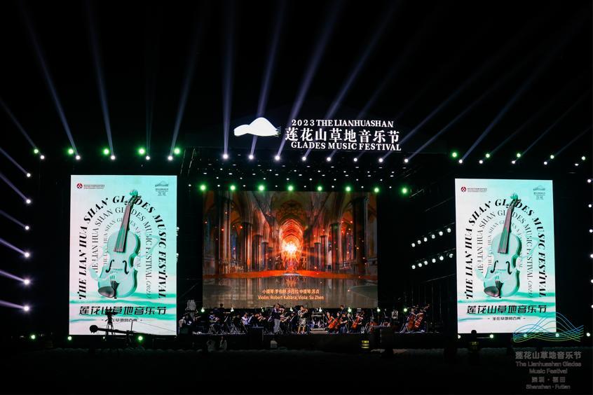 当晚,在福田交响乐团的激情演奏下,莲花山草地音乐节原创主题曲目《深圳之声》、交响乐《春天的故事》奏响深圳福田古典之音,小提琴与乐队版《鸿雁》及《嘎哦丽泰》让现场市民感受到中华民族的音乐之美,来自莫扎特《降E大调交响协奏曲 KV364》将全场气氛推至高潮。掌声雷动,福田交响乐团应邀返场,带来两首精彩的返场曲目《拉德斯基进行曲》《斯拉夫舞曲》,数千位市民在现场见证演出盛况。