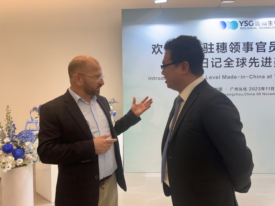 就在走访过程中,巴基斯坦驻广州代总领事萨达尔·穆罕默德便和逸仙生物科技化妆品生产基地相关负责人聊起了合作意向,双方畅谈甚欢。