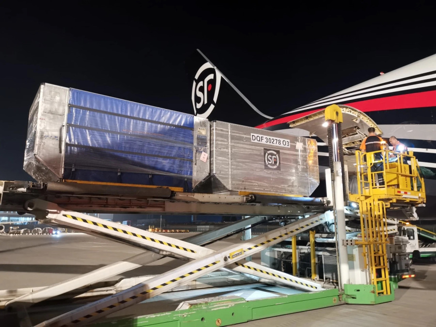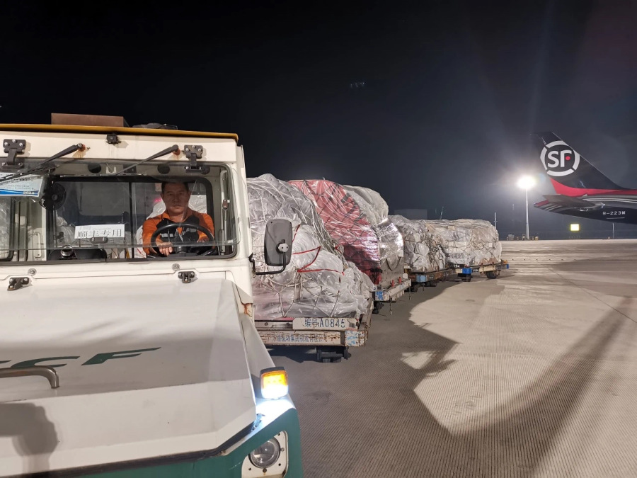 11月10日凌晨1:15,随着最后一班集装快递货物被平稳送入飞机货舱,又一架顺丰航空全货机顺利完成保障。“这是我们机坪‘快递小哥’们保障的第四架出港全货机了,我们接下来还要保障过站全货机,那才是高峰挑战!”班长陆洪忠说。