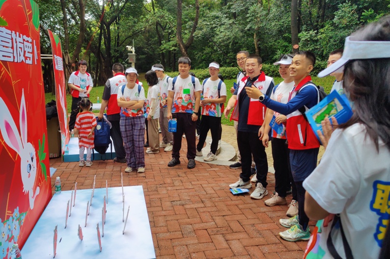 活动设置“同心协力促融合”“爱的魔力转圈圈”“幸福接力棒”三个摊位,社工组织青年来穗人员以团队为单位,共同携手完成2.5公里打卡任务挑战,促进青年来穗人员在打卡摊位挑战中相互帮扶、相互交流,推动青年来穗人员的沟通交流。徒步摊位中除三个打卡摊位外,还增设了两个补给点,帮助青年来穗人员在徒步活动了解更多来穗政策知识。