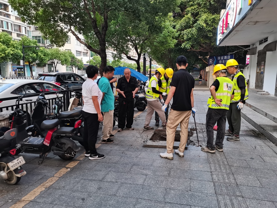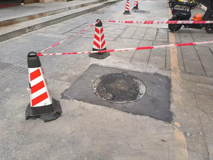经了解,早在2018年该路段曾进行升级改造,并在路面铺设了大理石,因而在开挖疏通时找不到下水道井口。该路段属于市政路,不在小区管理范围内,也无权开挖路面改造下水道。于是,大沙北社区及时上报大沙街道,大沙街道相关职能部门做进一步的协调。