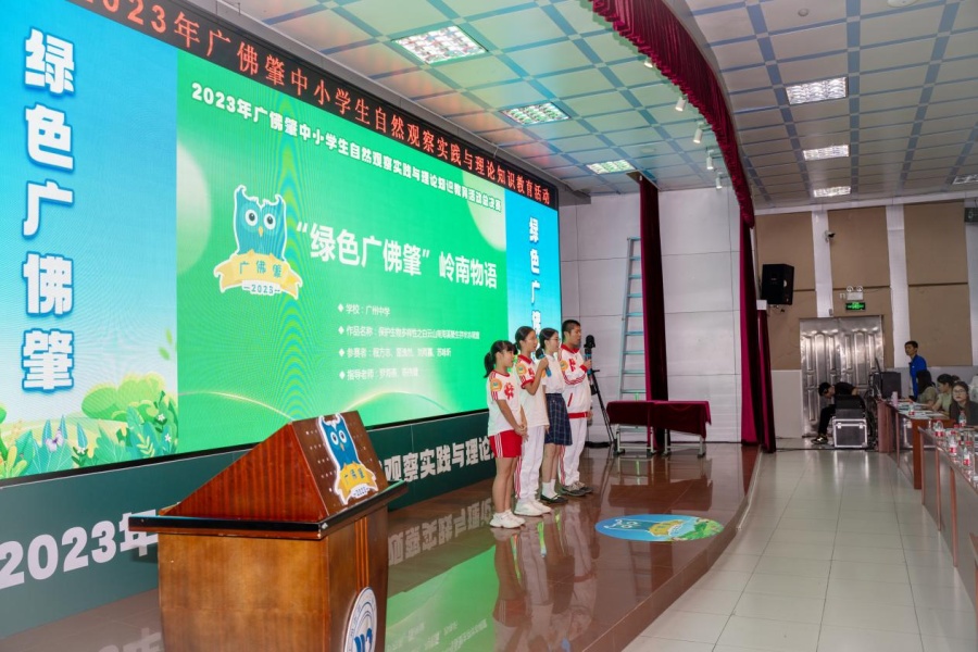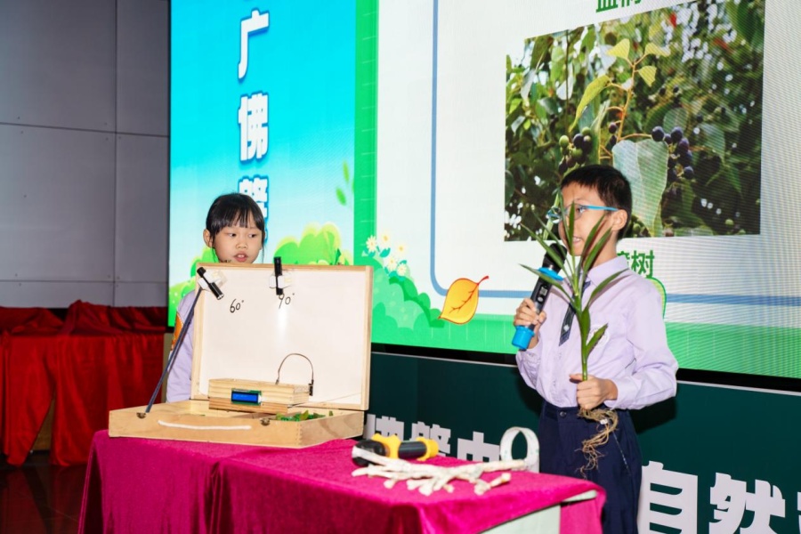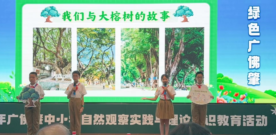 其中,越秀区农林下路小学四位同学组成的“走进自然”自然科普实践小分队“绿满湾区、穗观古榕”项目组,获得了一等奖和现场展演小学组银奖。