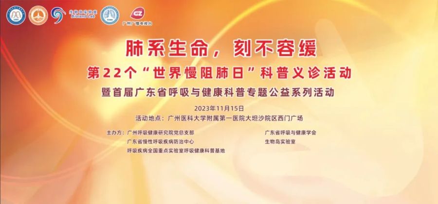 在世界慢阻肺日来临之际,为促进广大市民对慢阻肺的了解和防治,让更多慢阻肺患者能够更深入认识疾病,积极配合治疗,促进肺康复、提高生活质量,广东省呼吸与健康学会将携手广州呼吸健康研究院、广东省慢性呼吸疾病防治中心、呼吸疾病全国重点实验室呼吸健康科普基地和生物岛实验室共同开展系列健康活动,并准备了相关福利,期待您的参与!
