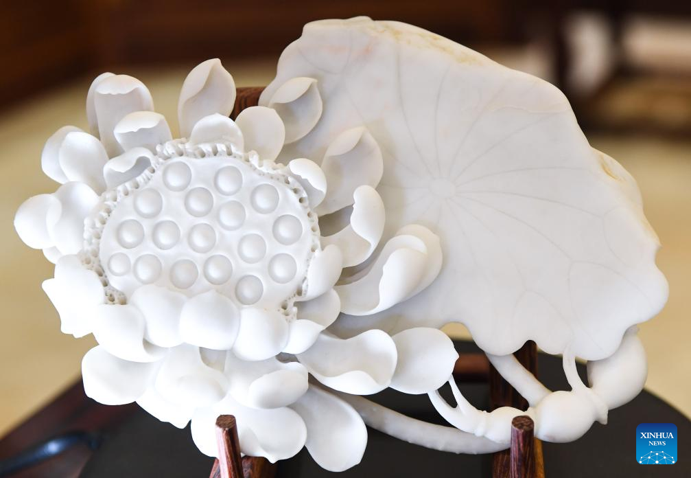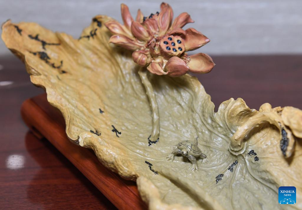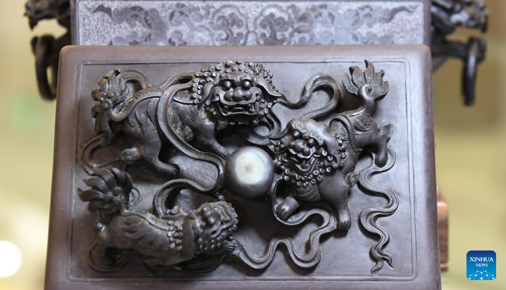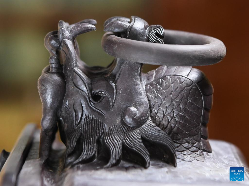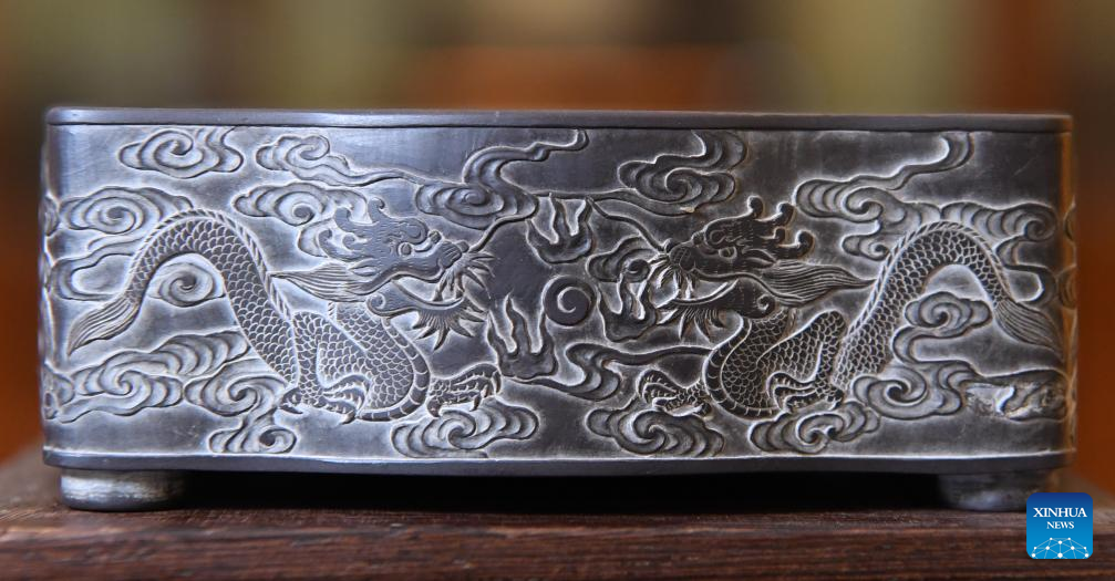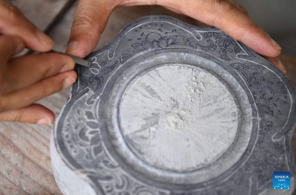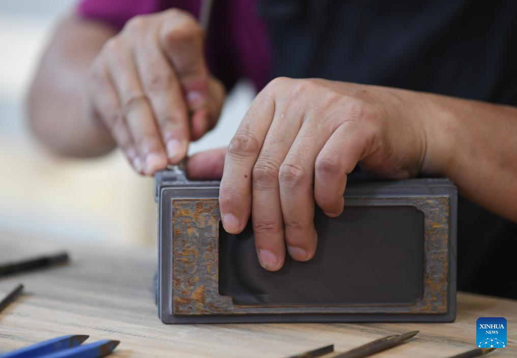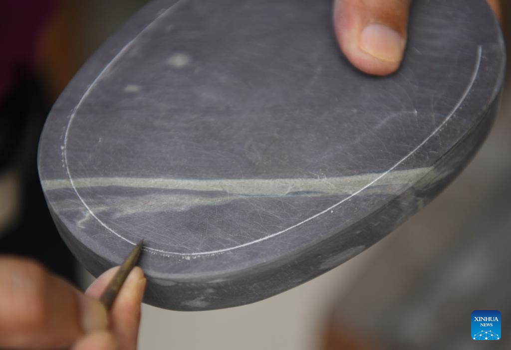 This photo taken on Oct. 25, 2023 shows a Duan inkstone made by Liu Xinxiang in Zhaoqing City, south China's Guangdong Province. (Xinhua/Deng Hua)