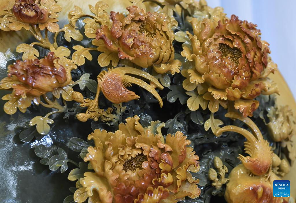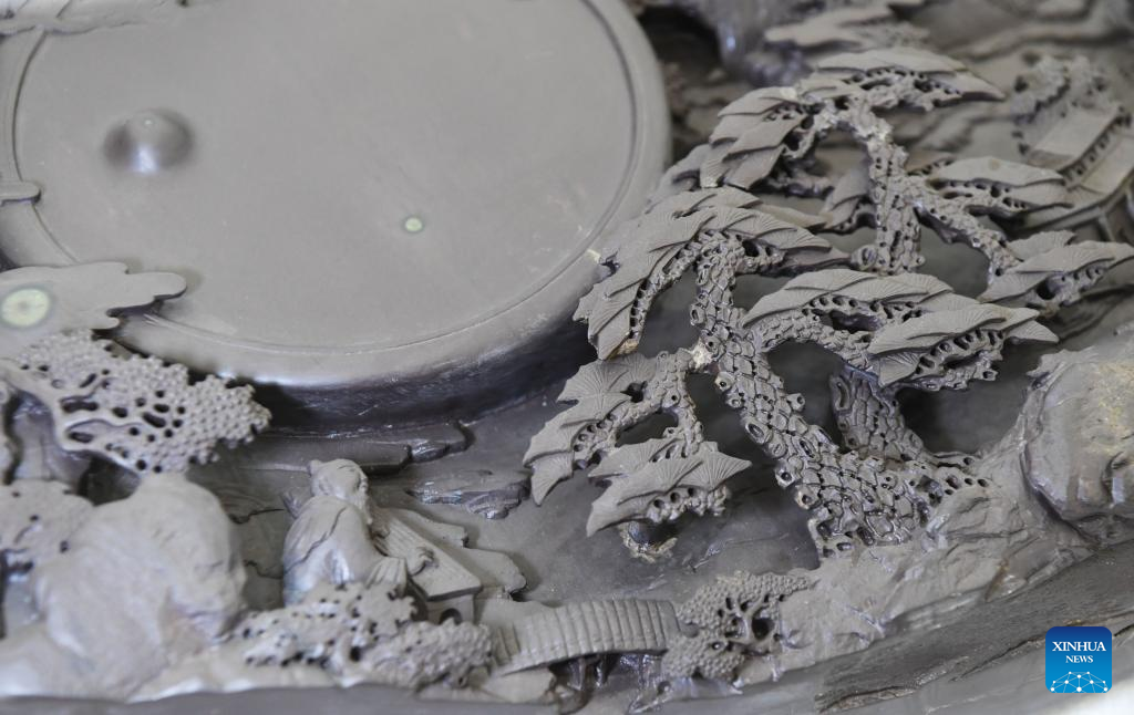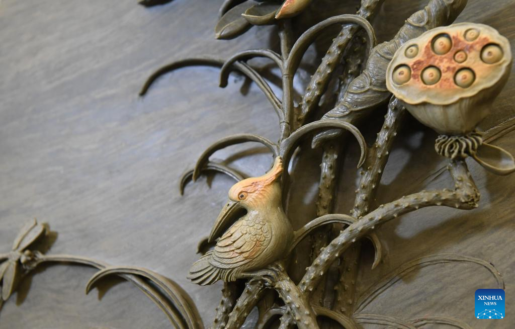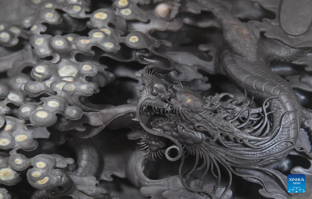 This photo taken on Oct. 25, 2023 shows part of a Duan inkstone made by Liu Xinxiang in Zhaoqing City, south China's Guangdong Province. (Xinhua/Deng Hua)