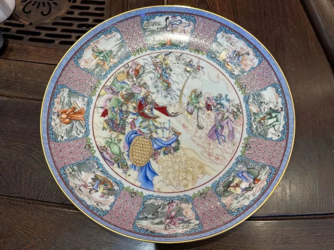 人物头发丝清晰可见的细腻广彩作品《八仙》。