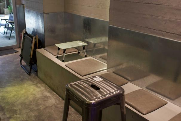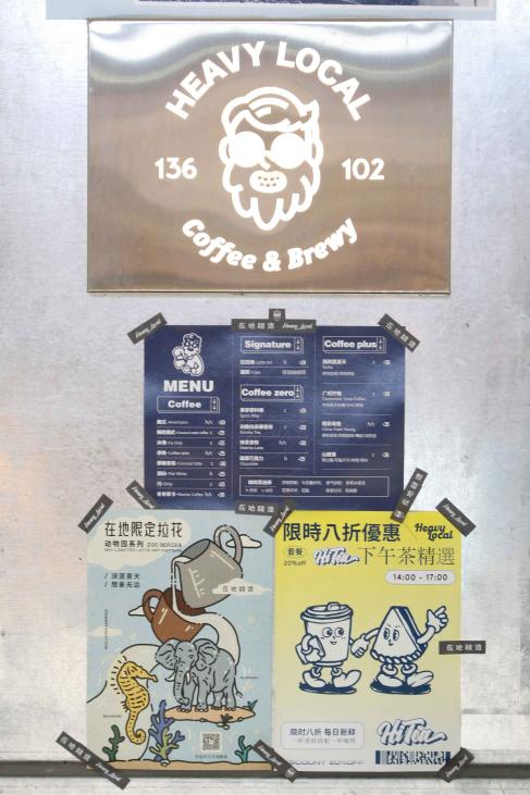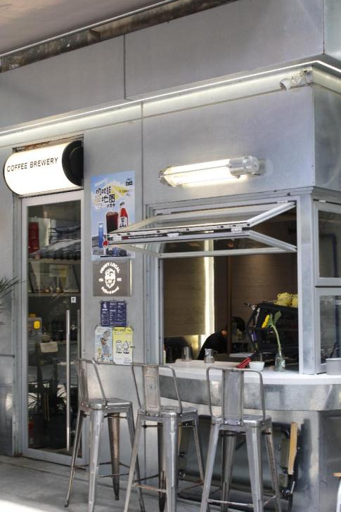 在地咖啡的店面不大,隐藏在家电回收和房地产店面之间,银色的外装修十分亮眼。店铺门口处摆放着两三张单人露营凳,摆放了烟灰盅方便部分客人使用。大家也可以坐在银色的高脚椅上,细细欣赏咖啡的制作过程。