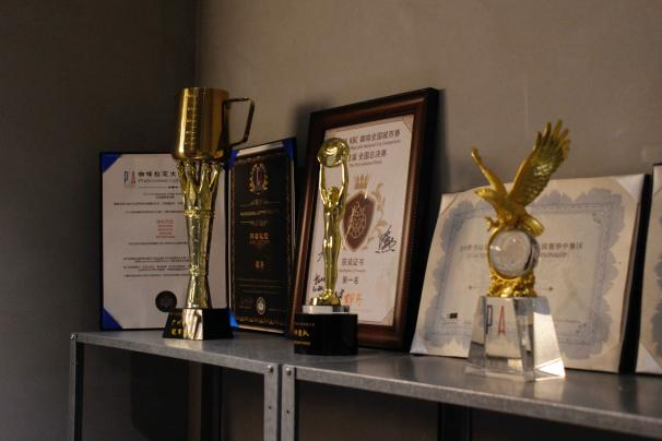 原以为,整个店面就只有第一眼看起来那么大,但走进细看,拐角处还有一个可以容纳约10人的“秘密基地”,最里侧的柜子上大方地向顾客展示了他们所获得的荣誉。