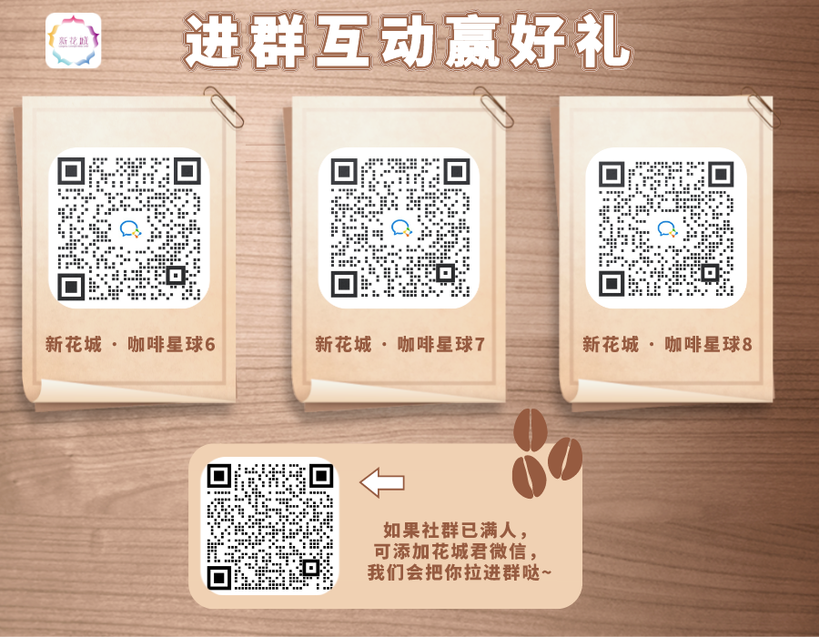 精彩连连,多重好礼送不停!记得进入新花城·咖啡星球社群,跟“咖啡控”们一起分享咖啡日常,还有各种精彩好礼等你来赢!
