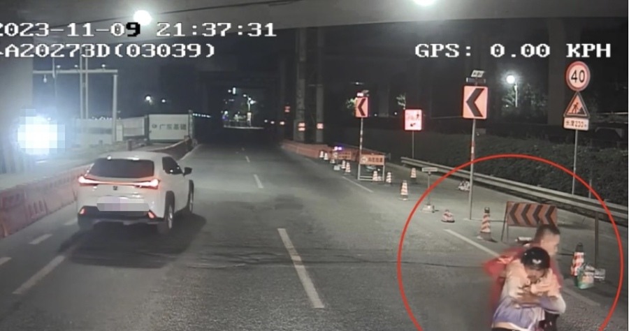 11月9日21时35分许,番禺片区303A线车长朱善宇驾驶公交车执行琶洲塔往广州南站营运任务,行驶至汉溪大道路段时,隐约看到前方马路中央有个人横躺着,身体微蜷一动不动,旁边一辆电动自行车倒在地上,他猜测应该是出了事故。可马路上的车辆来来往往,却没人上前帮忙。