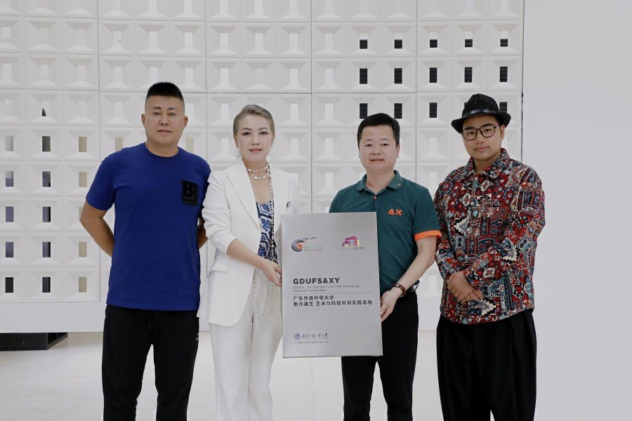 签约仪式上,广外艺术学院党委书记卢海清,白云区音乐家协会主席、新月演艺董事长郭南生共同为艺术与科技实训实践基地揭牌。该基地将充分发挥高校和企业的各自优势,强强联合,促进艺术学院学生的全面发展。