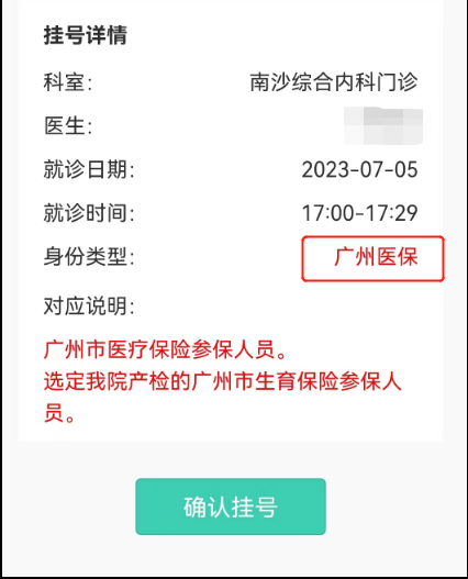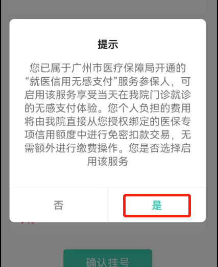 挂号时,身份类型选择“广州医保”,并根据系统提示点“是”,代表本次就医同意使用无感支付。