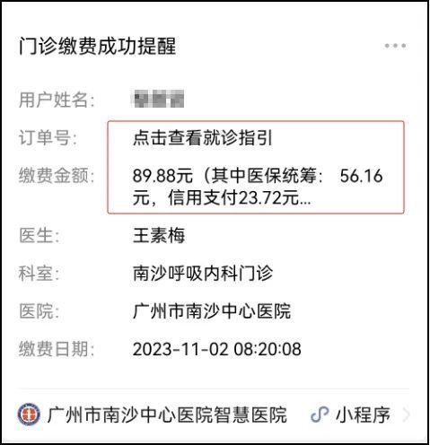 就诊后,患者无须任何操作,系统自动完成无感支付且推送缴费成功提醒,患者可根据系统提醒内容到相应的窗口取药。