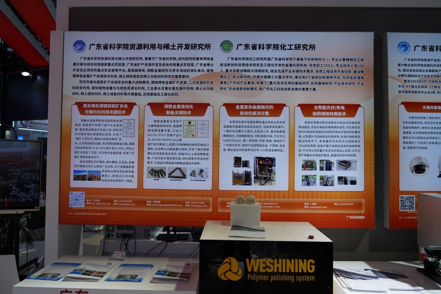 在此次高交会上,广东省科学院化工研究所展示了两项技术成果。其中一项为中性固态电解抛光技术,通过阳极电解过程实现高质量的金属抛光,该技术不仅利用中性固态颗粒取代现有的高污染高危险的液态电解液,还可以替代现有的电解抛光加机械抛光步骤,实现多工件一步抛光,无需后处理过程,无损精密部位,是一项低碳、环保、智能、高效的下一代抛光技术,适用于各类3d打印、cnc制造金属制品的后处理,实现金属制造加工全流程自动化,为金属行业的自动化升级提供中国方案。