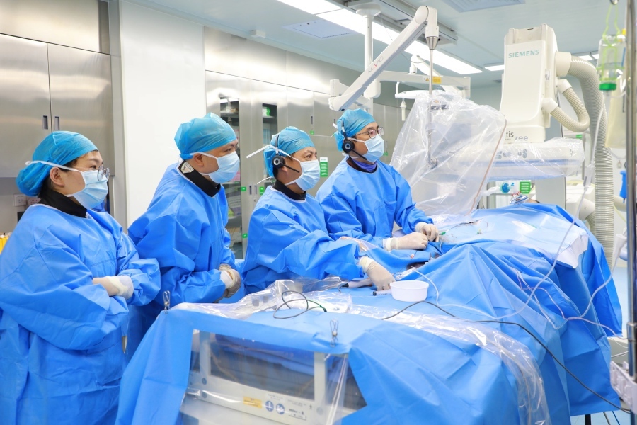 手术由复星医疗集团心血管技术总监、佛山复星禅诚医院大内科主任彭宇程教授和上海交通大学医学院附属瑞金医院许建忠教授共同实施。“肾动脉交感神经射频消融术(RDN)作为一种治疗高血压的创新微创介入治疗方式,通过射频能量对分布于肾动脉外的交感神经进行消融,在一定程度上阻断大脑与交感神经之间的信号传导,从而降低高血压患者过于活跃的交感神经兴奋性。”彭宇程介绍,RDN专用导管从患者的大腿根部股动脉进入到肾动脉合适的位置,开展电射频消融治疗,整个手术不在体内留下任何植入物,且创伤小。