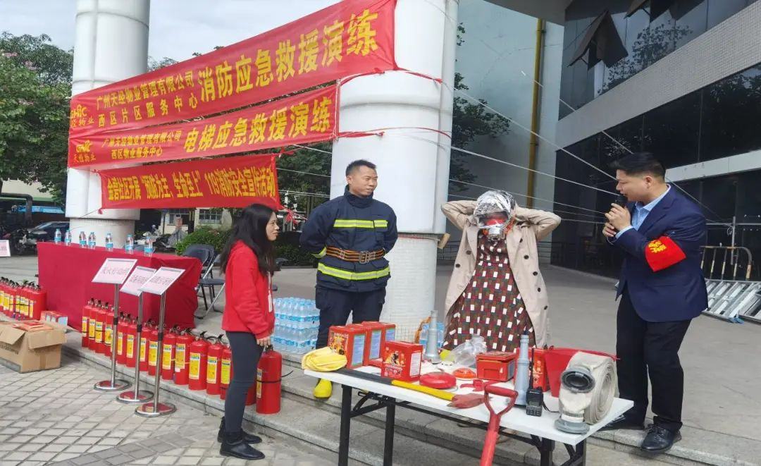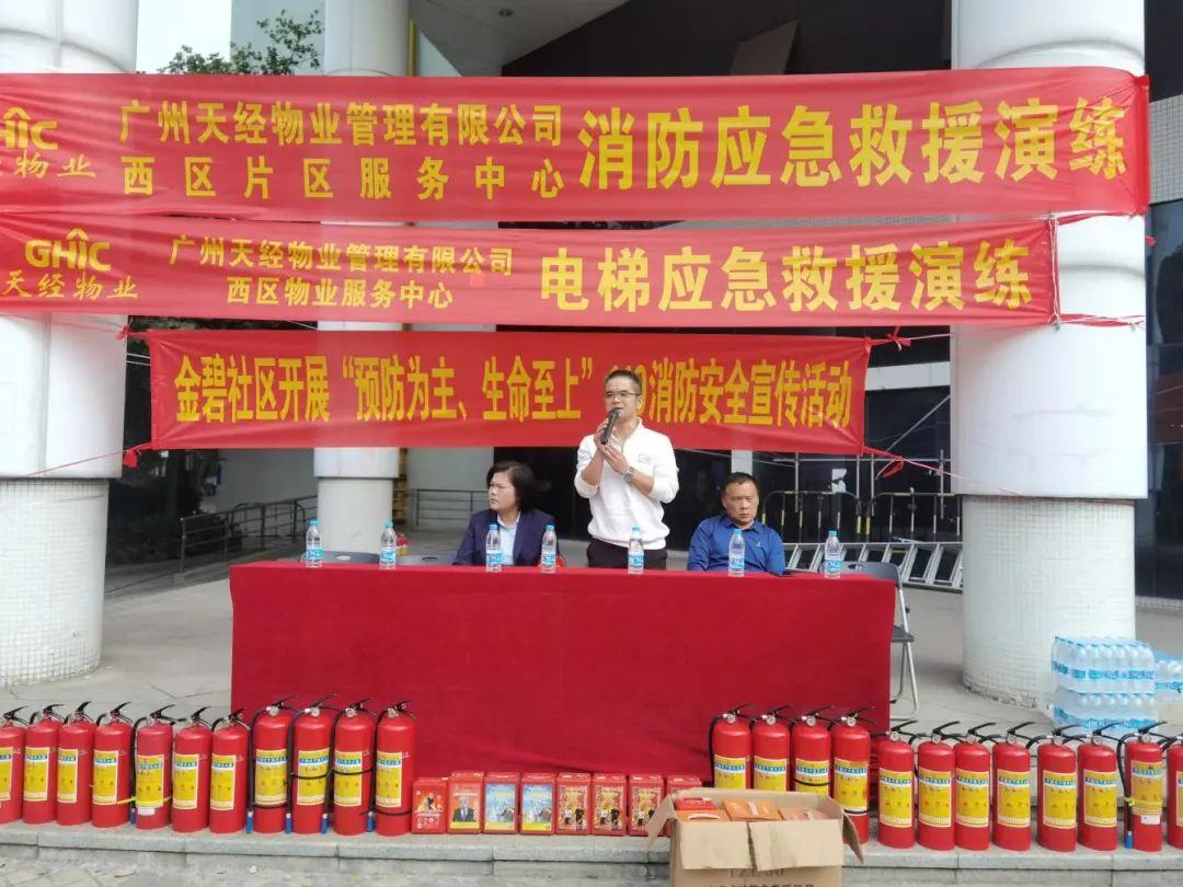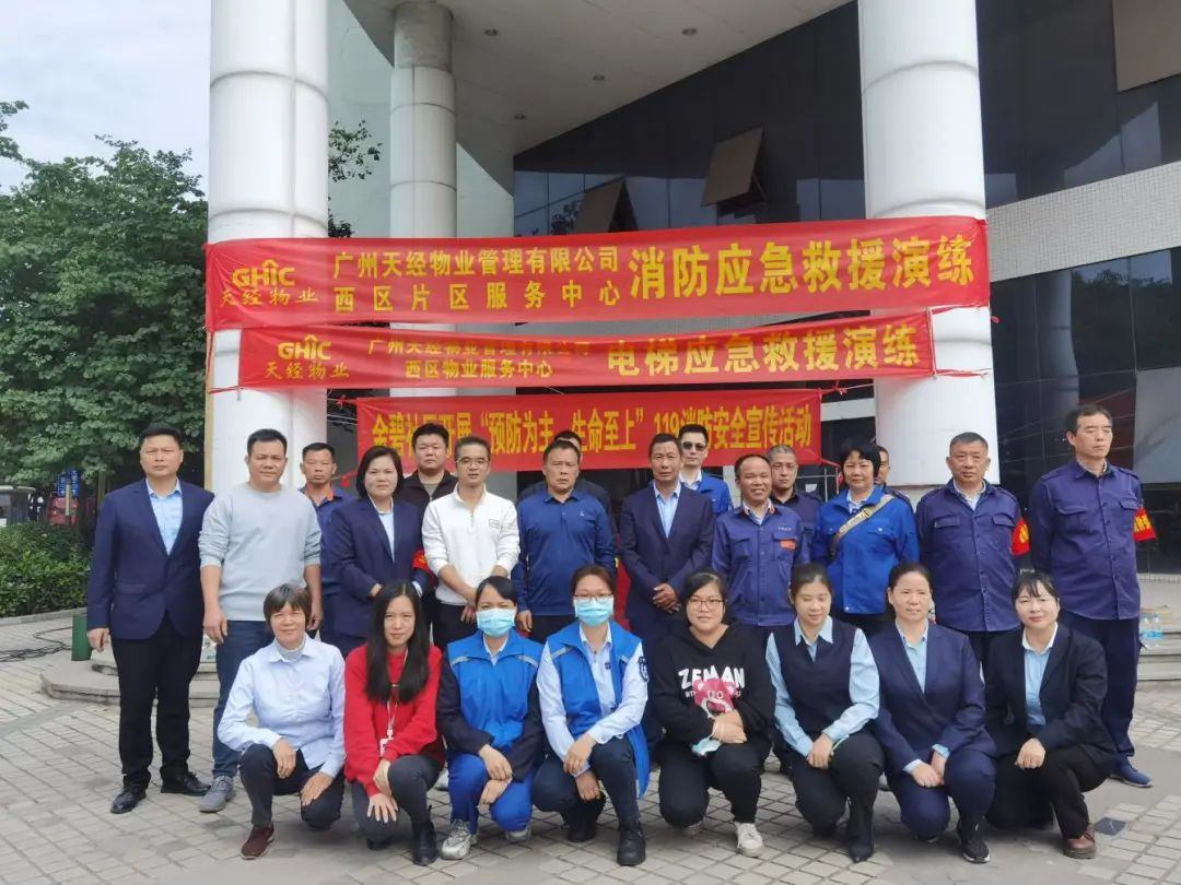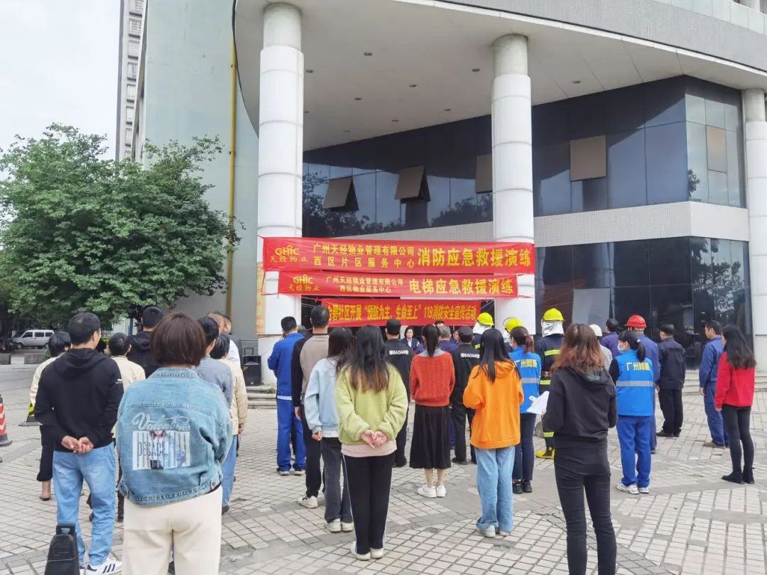 日前,黄埔区夏港街道金碧社区居委会联合共建单位广州天经物业有限公司、广州顺心物业管理有限公司在祺航大厦开展消防应急疏散演练活动,社区工作人员、物业工作人员、企业员工等100余人参加了活动。