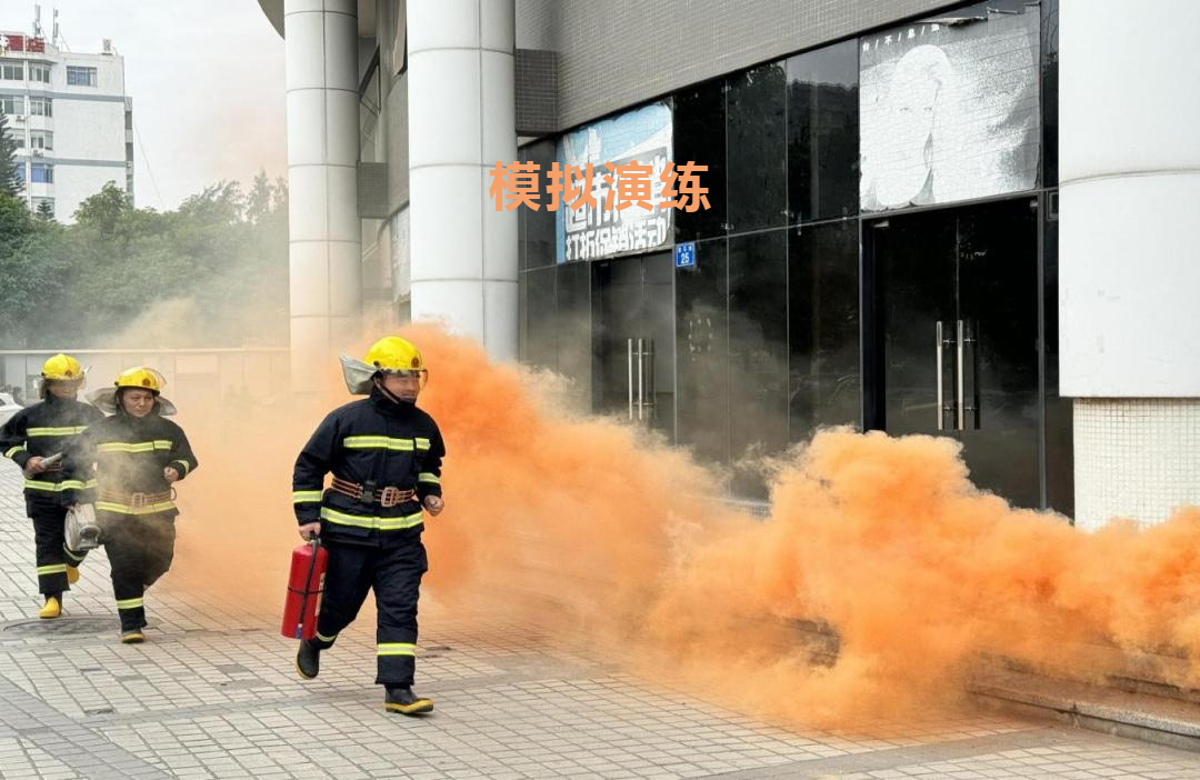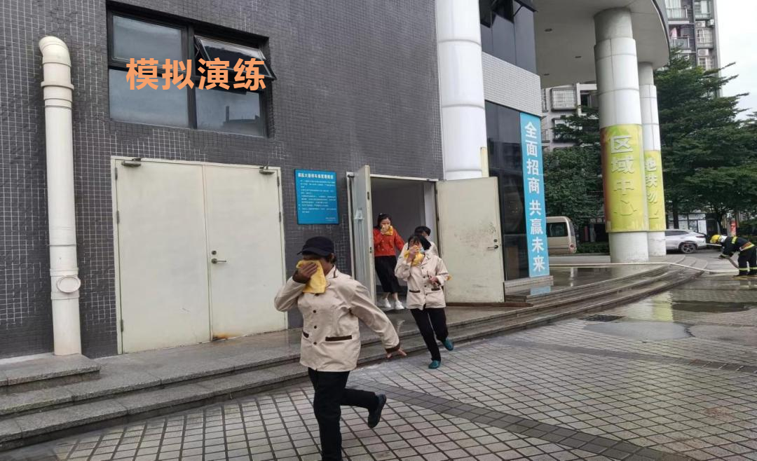演练过程中,各组职责明确。现场总指挥组迅速集结各小组并发布疏散指令;疏散组工作人员收到指令后,立刻提醒被困人员用湿毛巾、衣袖或手掌捂住口鼻,引导现场人员找到逃生疏散路线;随后,灭火行动组利用灭火器、消防栓等消防设施扑灭火源。