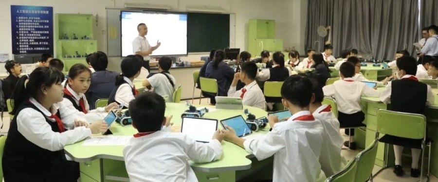 访学期间,姊妹学校的学生随学伴深入十个班的课堂随班学习,亲身体验祈福英语实验小学双语课程特色,进行语文、外教英文、数学、人工智能、美术、科学等学科学习。姊妹学校老师分成几个观课小组,深入到语文、外教英语、数学、科学及人工智能等课堂。