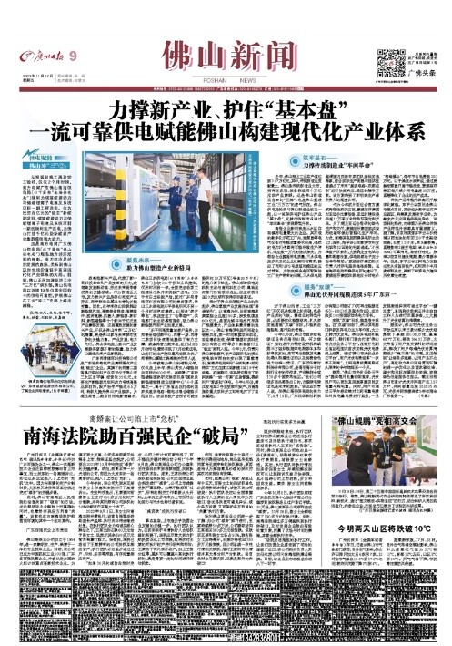 这是南方电网广东佛山供电局(以下简称“佛山供电局”)服务地方经济发展的缩影。电力供应是经济发展的血脉,关系到佛山迈向全球价值链中高端现代化产业体系的大局。目前,佛山正在加速挺进工业“三万亿”俱乐部,佛山供电局以连续13年位居全国前十的供电可靠性,护航佛山在工业“冲三”之路上越走越稳。