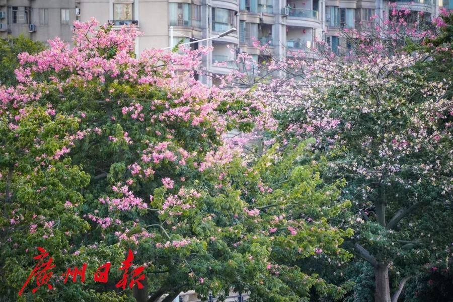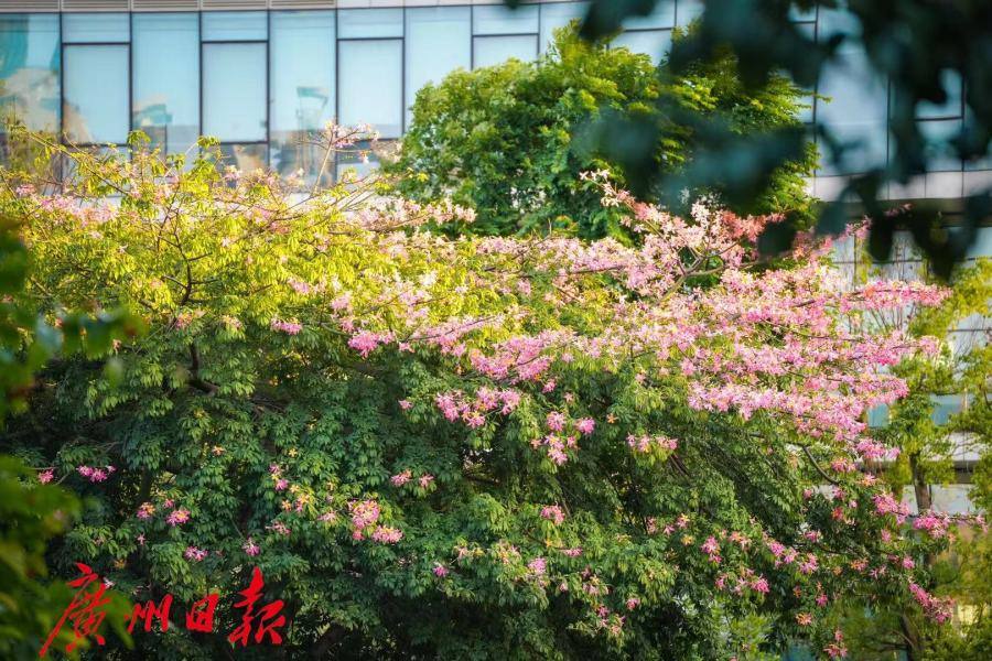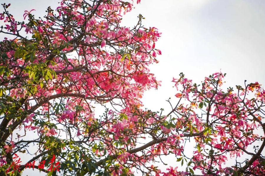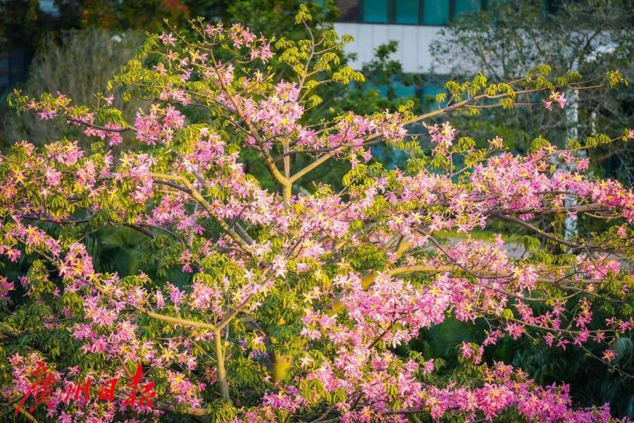 满树粉红,花开如雪。眼下正是美丽异木棉的花期,一份粉色浪漫正伴随着秋天的脚步来到广州。