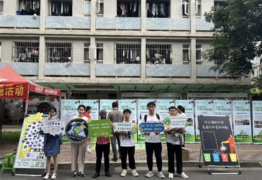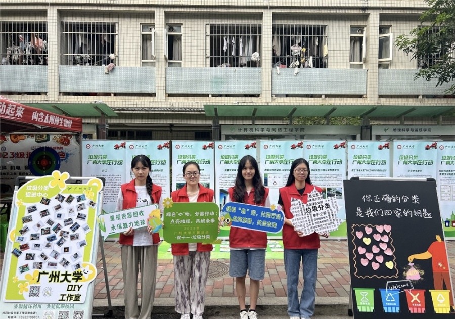 近日,广州市番禺区小谷围街在广州大学开展了以“绿色化、减量化、可循环”为主题的垃圾分类宣传活动。