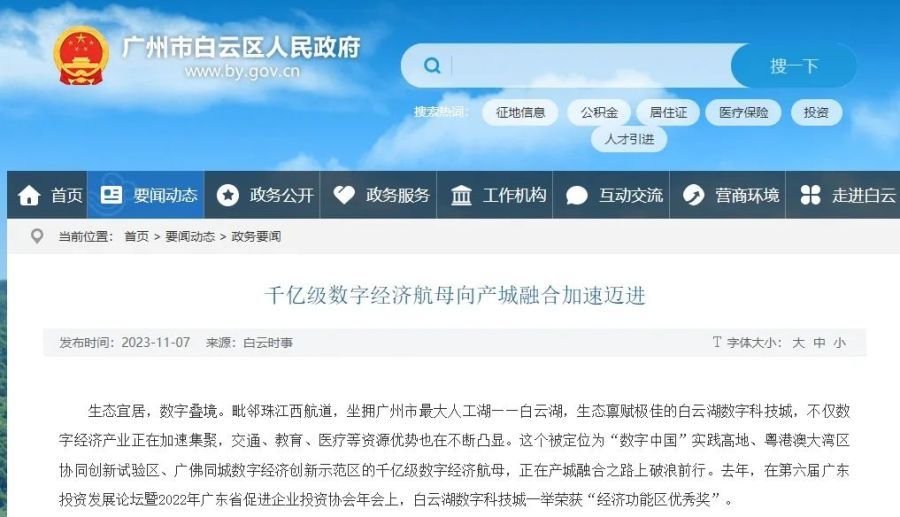 广州市白云区人民政府官网截图