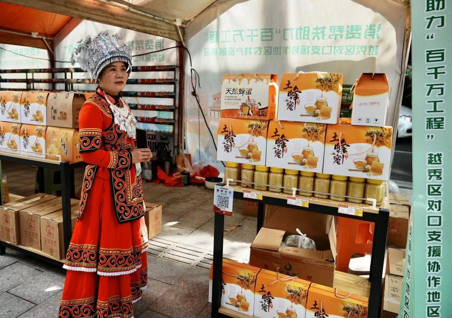 越秀区商务局有关负责人介绍:本次活动共组织发动了300多户对口帮扶企业参展,陆续为广大居民朋友带来800多个生态农产品和30多种地方风味小吃体验,还有苗绣、苗银、蜡染等非遗传统工艺和湛江渔船、渔具现场展示,把丰富多彩的民族风情、山海特色带到家门口供居民选购品尝。这既是“以商为媒、以商助农”,聚焦缩小城乡区域发展差距的重要举措,也是丰富本地消费供给、释放消费新潜力,为促消费扩内需蓄能加力的又一有效助力。越秀区商务局将在区“百千万工程”指挥办公室指导下,整合商贸资源、拓展商业渠道,积极联动对口支援办、属地街道等有关部门持续放大消费动能,为对口支援协作地区产品销售、产业发展增添助力。未来,随着越秀区与对口支援协作地区不断创新合作机制、丰富合作内涵、提升合作层次,还将带动更多更丰富的特色产品翻越山海,从山海田间到湾区万家,推动区域协同、共享发展成果。