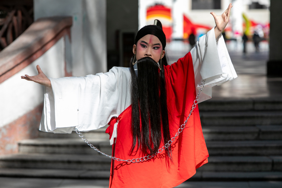 来自詹天佑小学五年级的刘睿姿演绎粤剧《女儿香之剑归来》