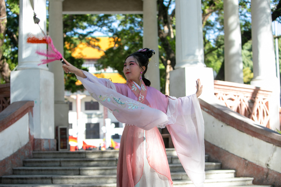 来自广州市长堤真光中学初一年级的王丽斐饰演明代剧作家汤显祖代表作《牡丹亭》里的杜丽娘